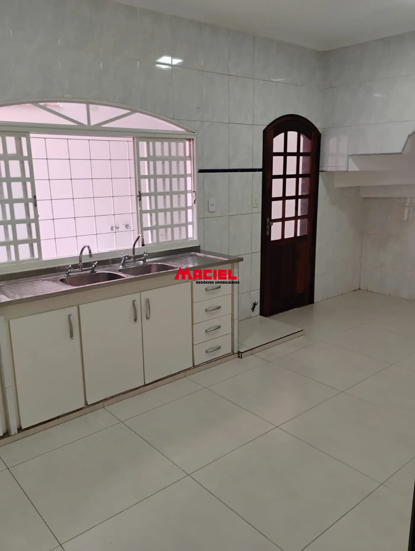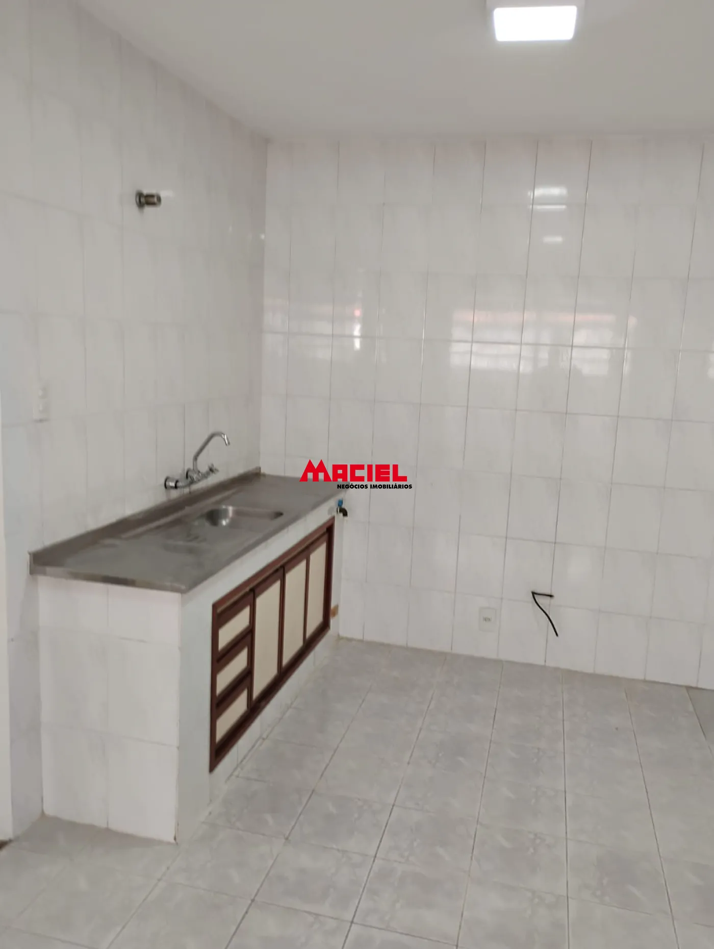 - Cozinha com pia e gabinete.