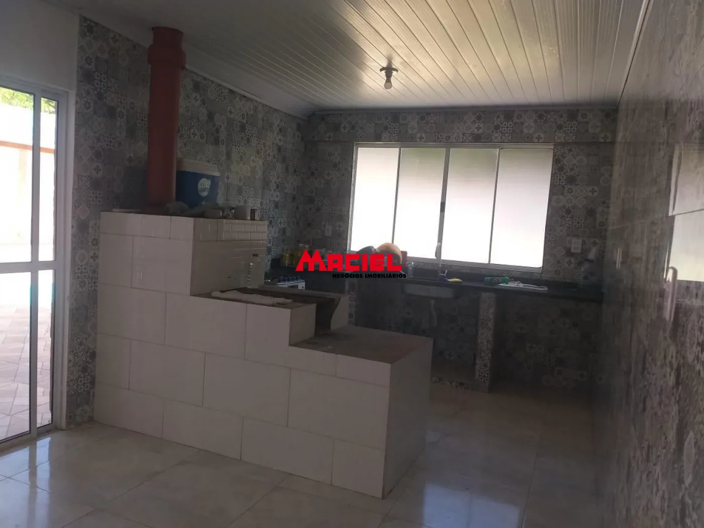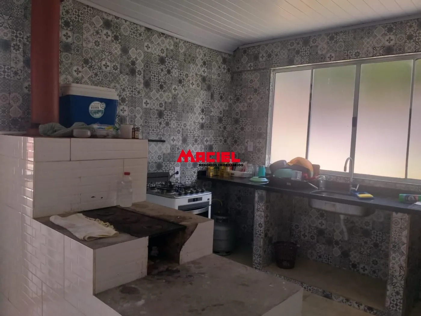 Cozinha com fogão de lenha