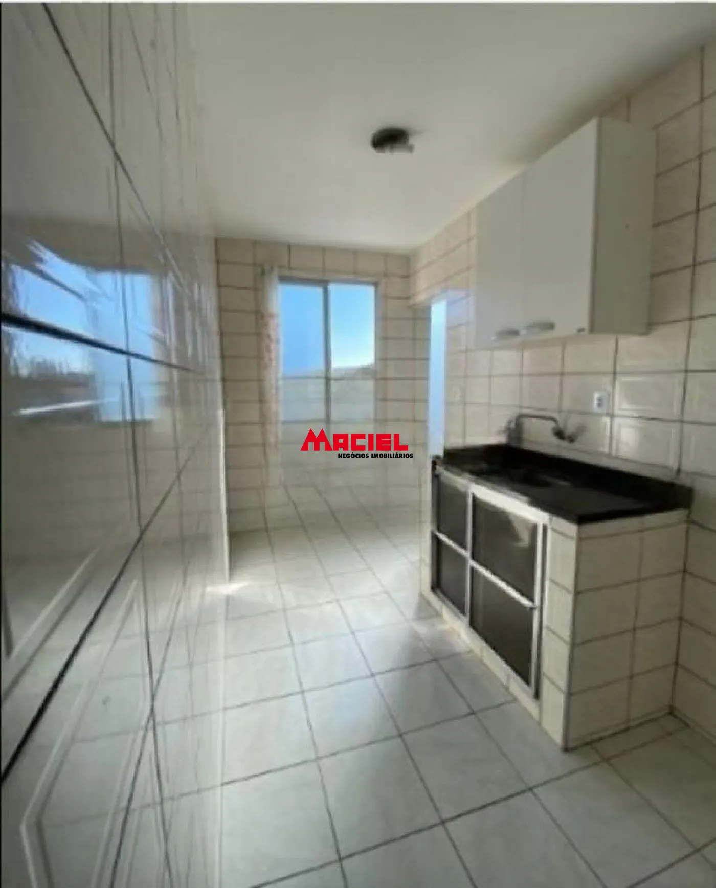 ## São 02 quartos, 01 WC com box e gabinete, gabinete na cozinha, piso frio