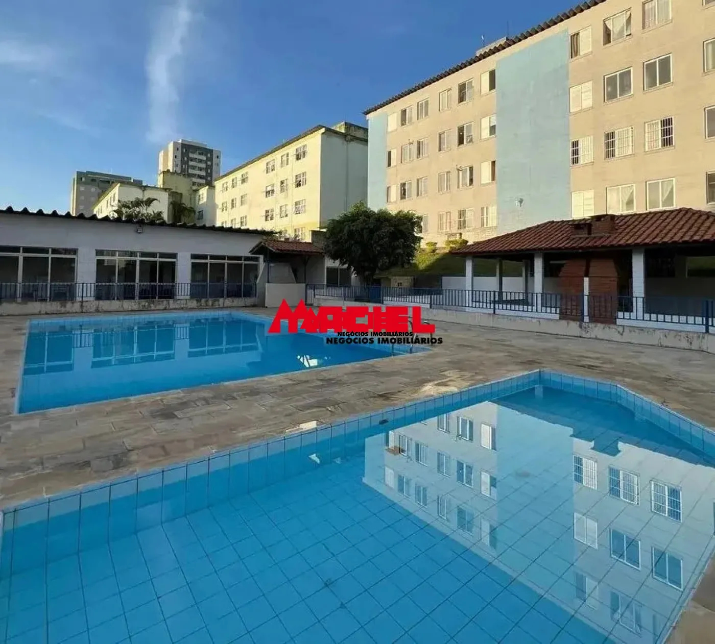 1 Salão de festas, quadra poliesportiva, piscina adulto e infantil, 2 churrasqueiras