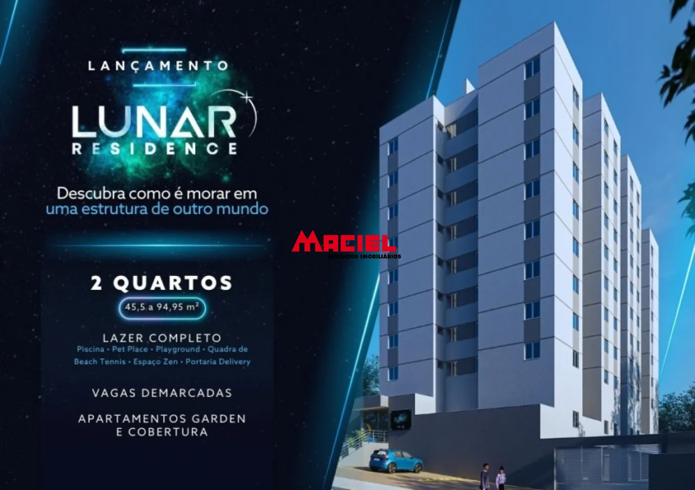 São 72 apartamentos sendo de 2 dm com 46m2, e alguns com apto cobertura com 94,94m2, e apto garden, torre única, com 2 elevadores, vaga p carro e moto, salão festas, cooworking, salão de festas, wi-fi, carregamento p carro elétrico, bicicletário, área gourmet, playground, piscina com deck, pet place,