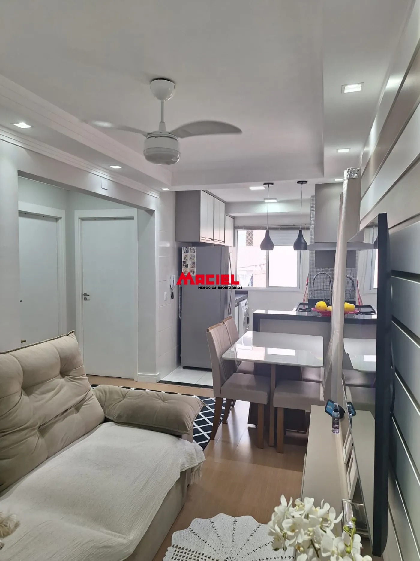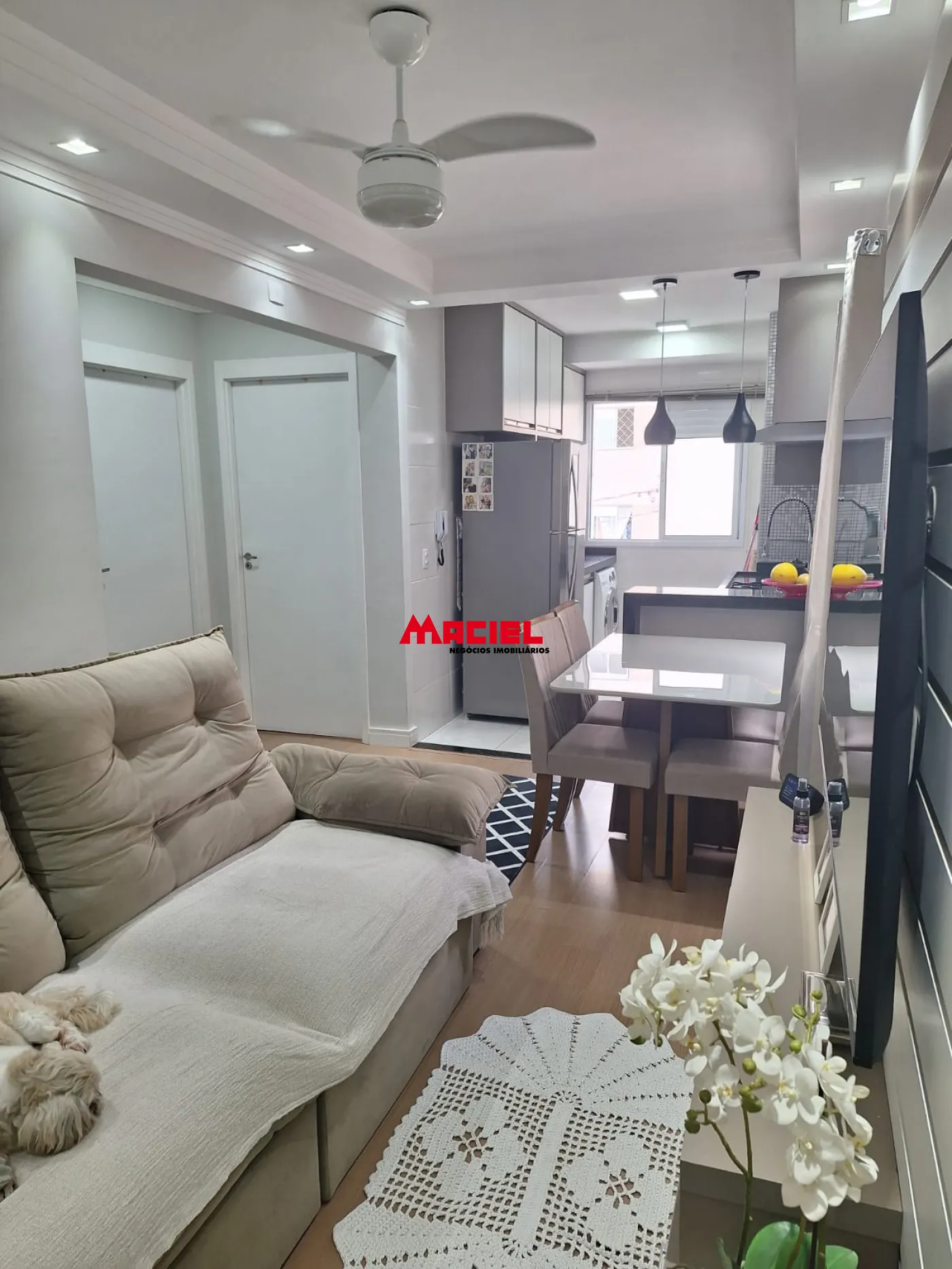 Este apartamento de 47 m² possui sala para 2 ambientes, cozinha conceito aberto, 2 dormitórios, 1 banheiro social, 1 vaga de garagem. Armários planejados na cozinha e box tipo Blindex no banheiro.
