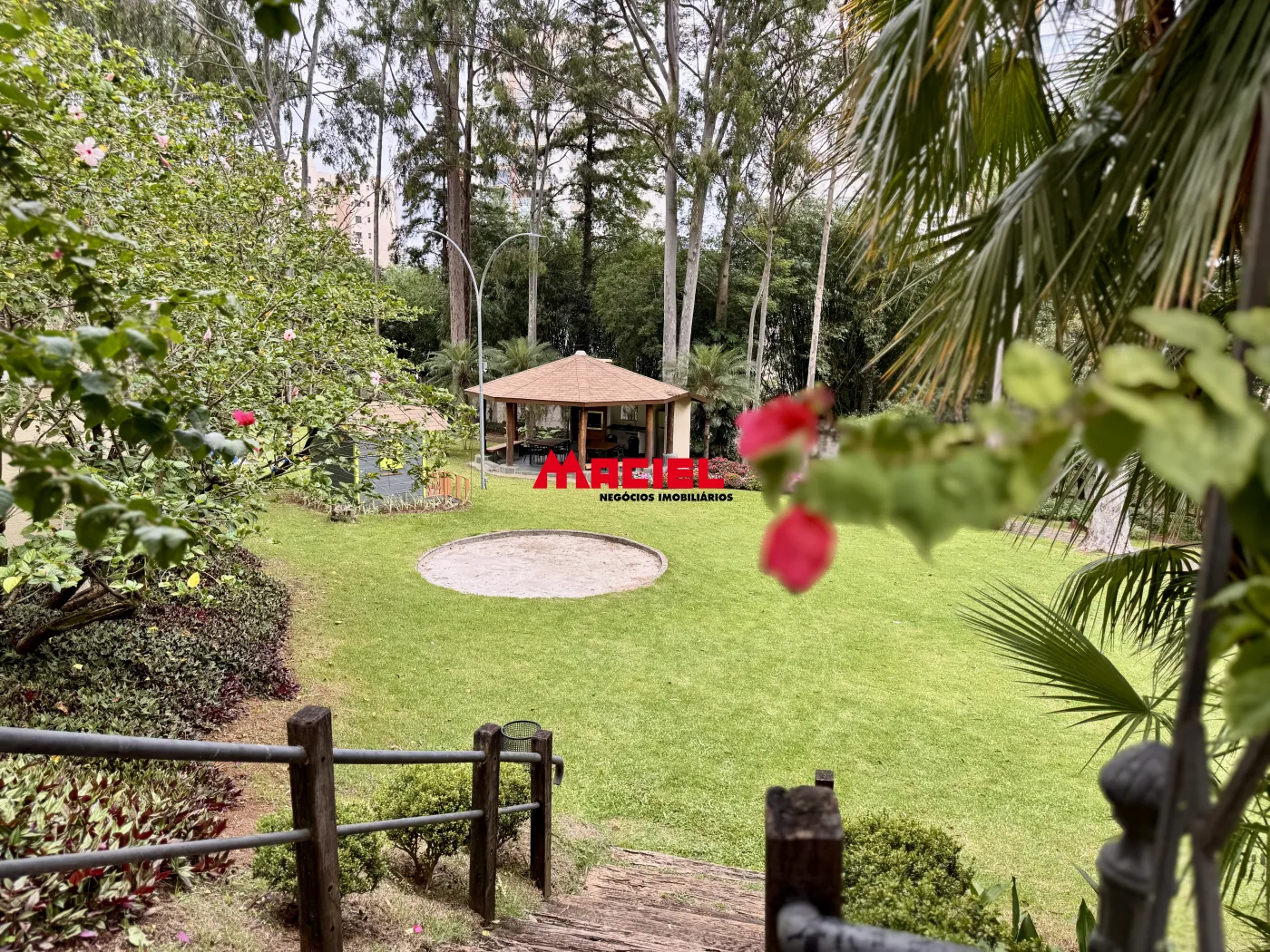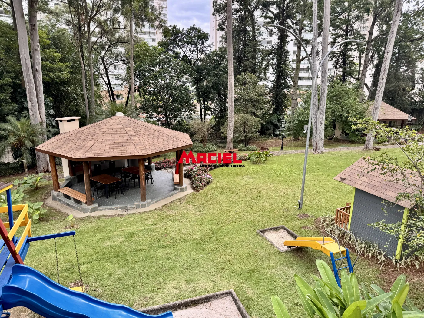 Bosque privativo com três quiosques