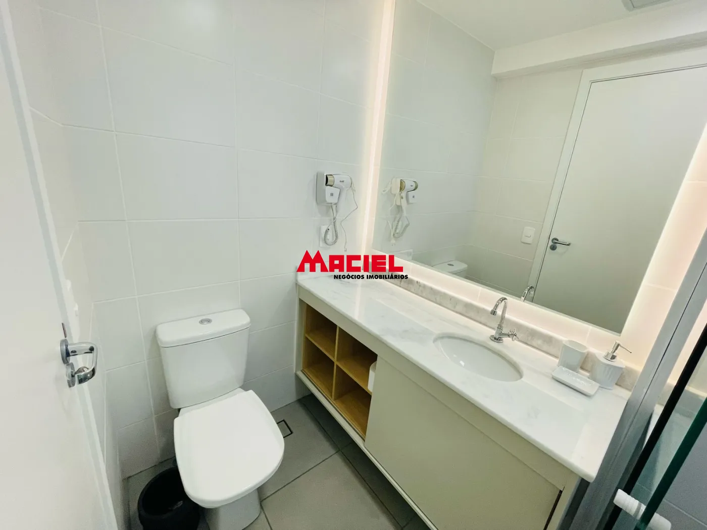 Banheiros equipados com chuveiros, box e espelhos com LED
