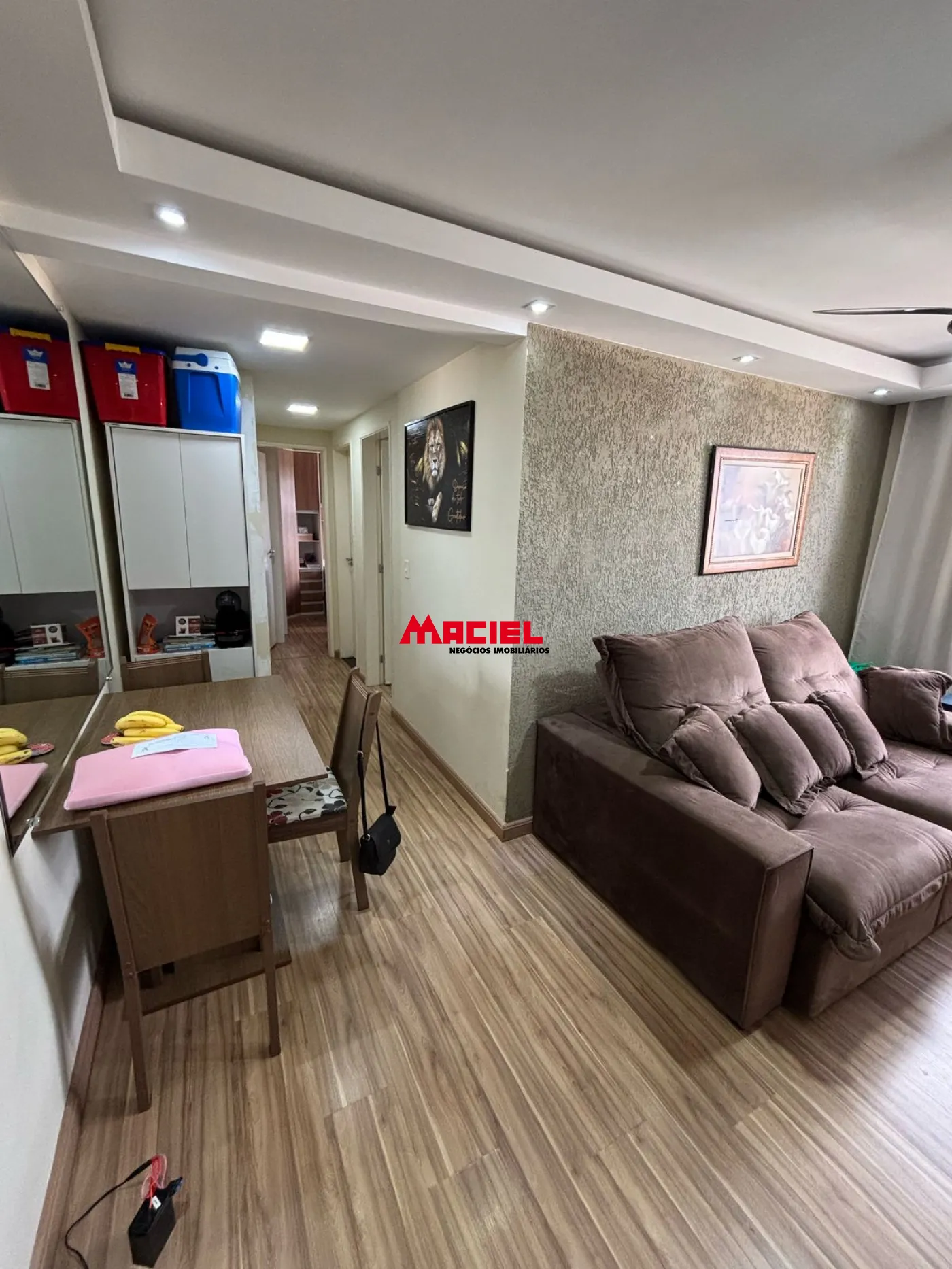 Sala com sanca e espelho;