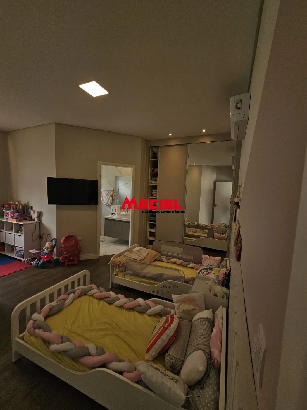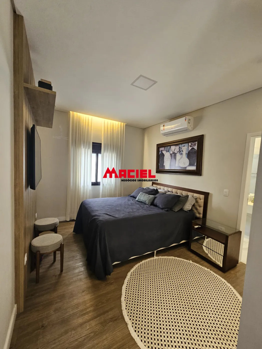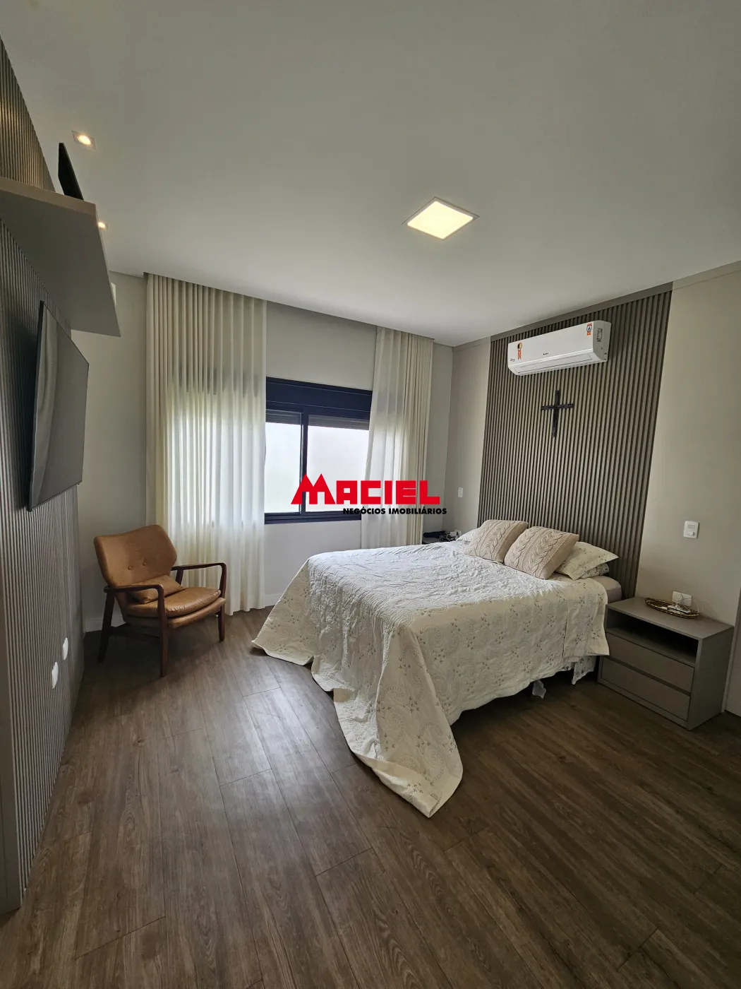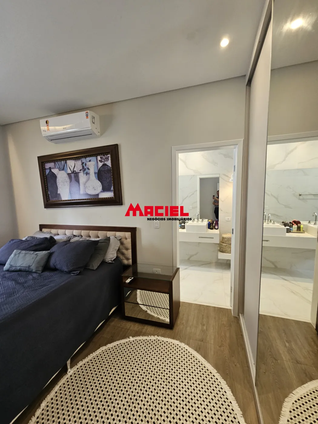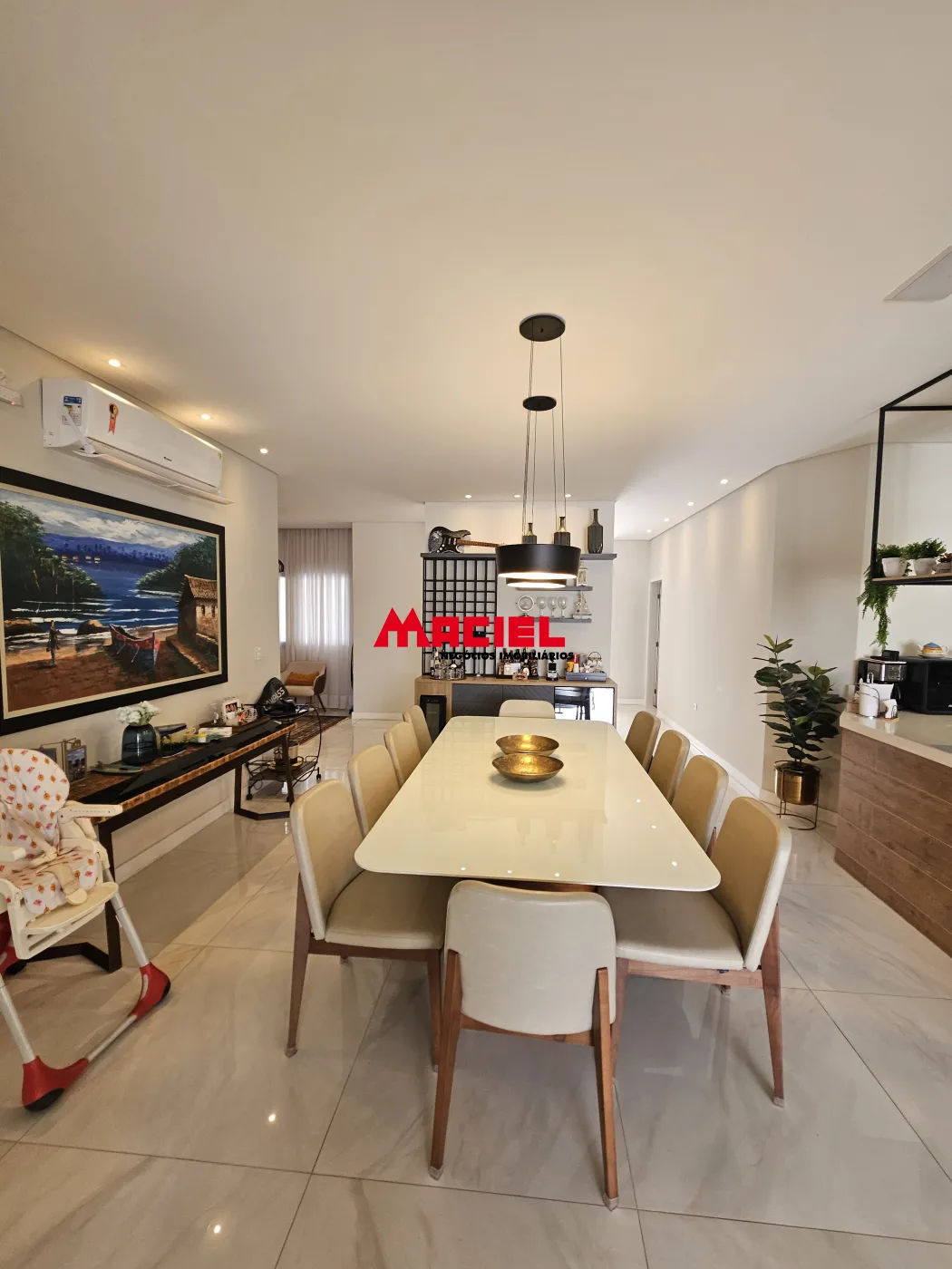 Sistema de som integrado, ar-condicionado em todos os cômodos, aquecimento solar, e internet cabeada em toda a casa.