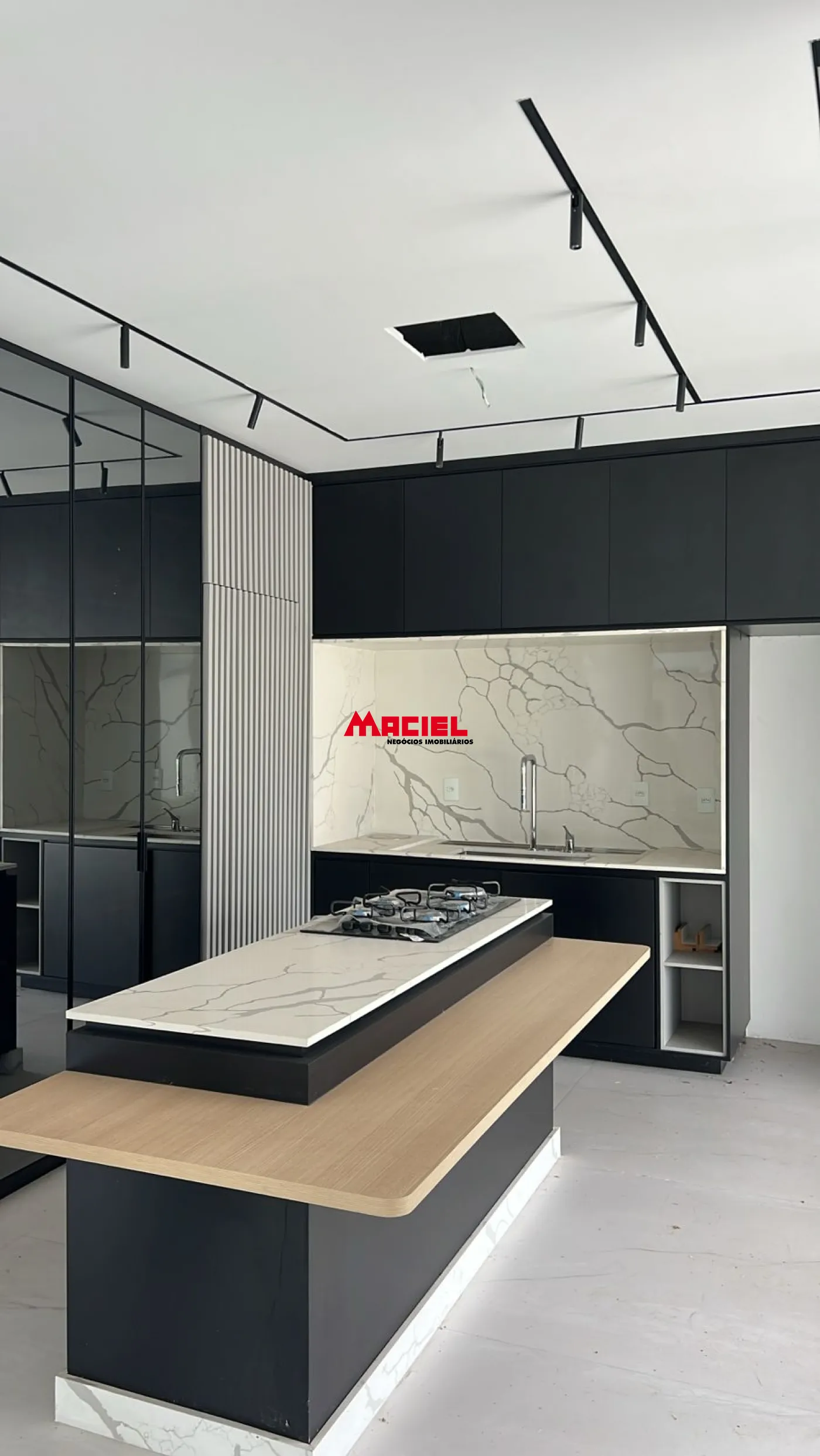 Cozinha integrada ao espaço gourmet com churrasqueira