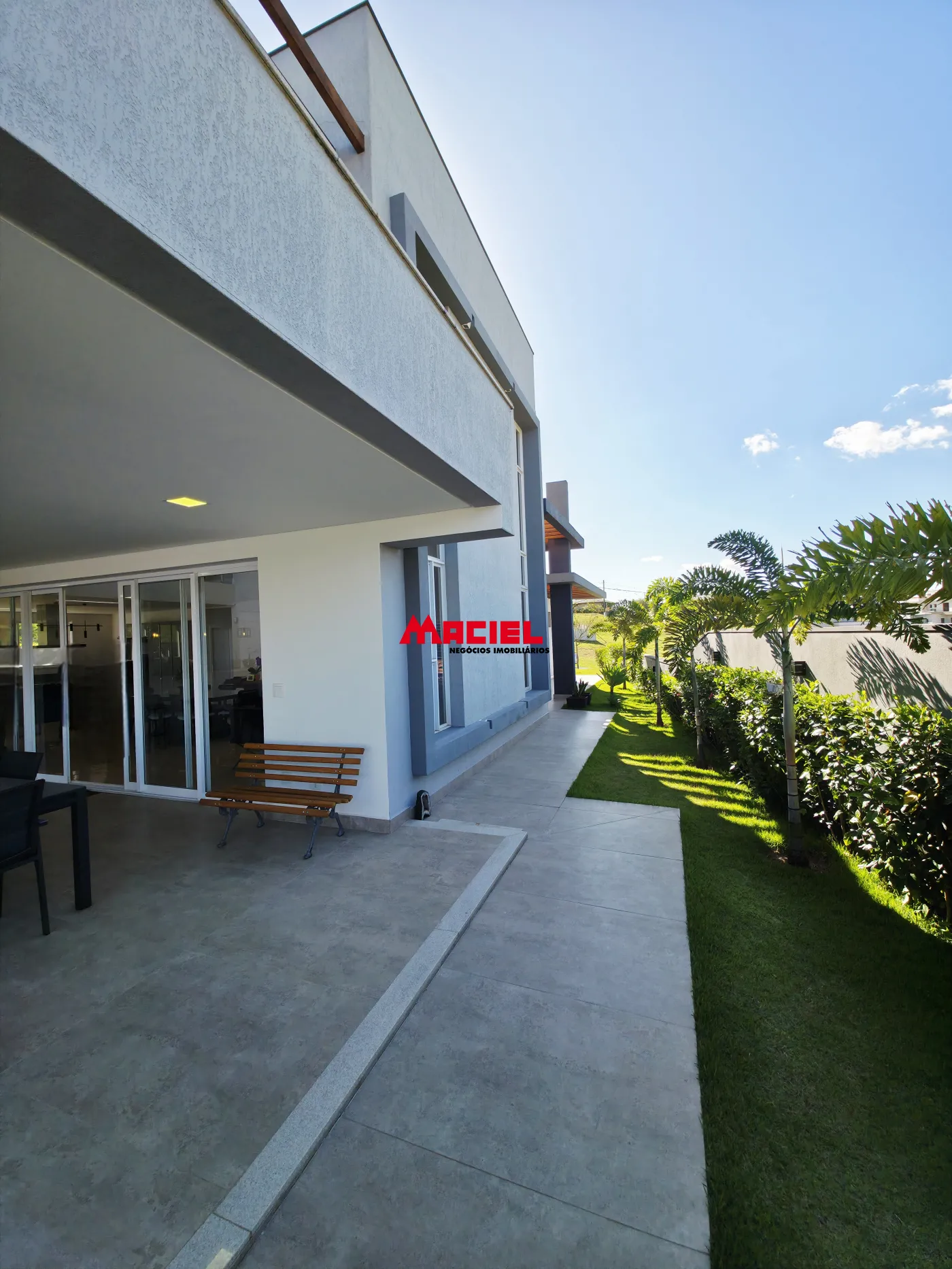 Paisagismo que harmoniza a residência com a natureza ao redor.