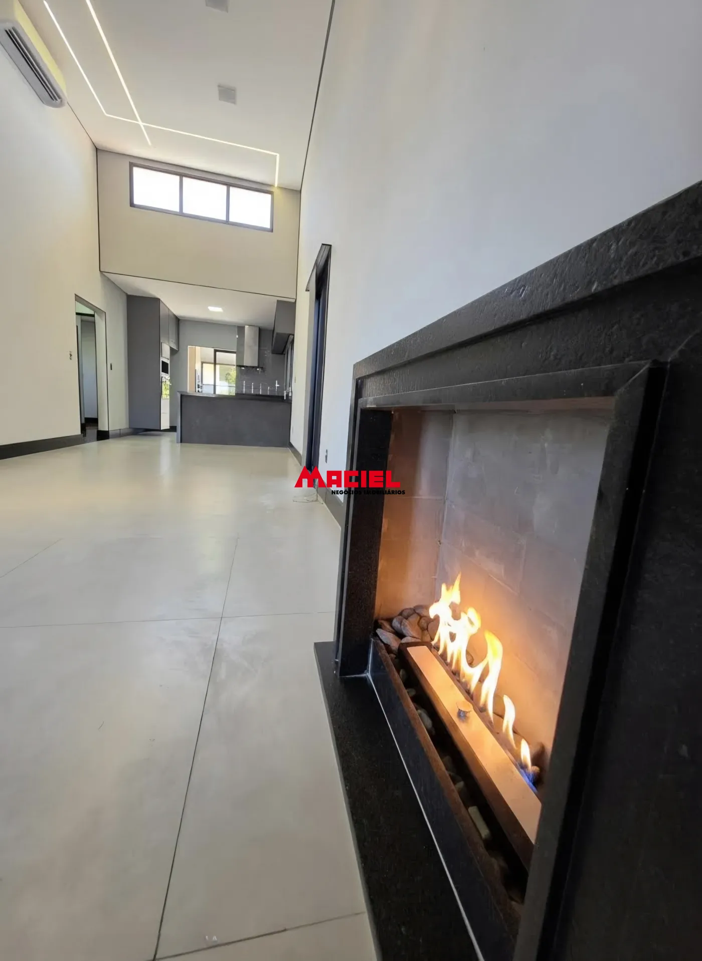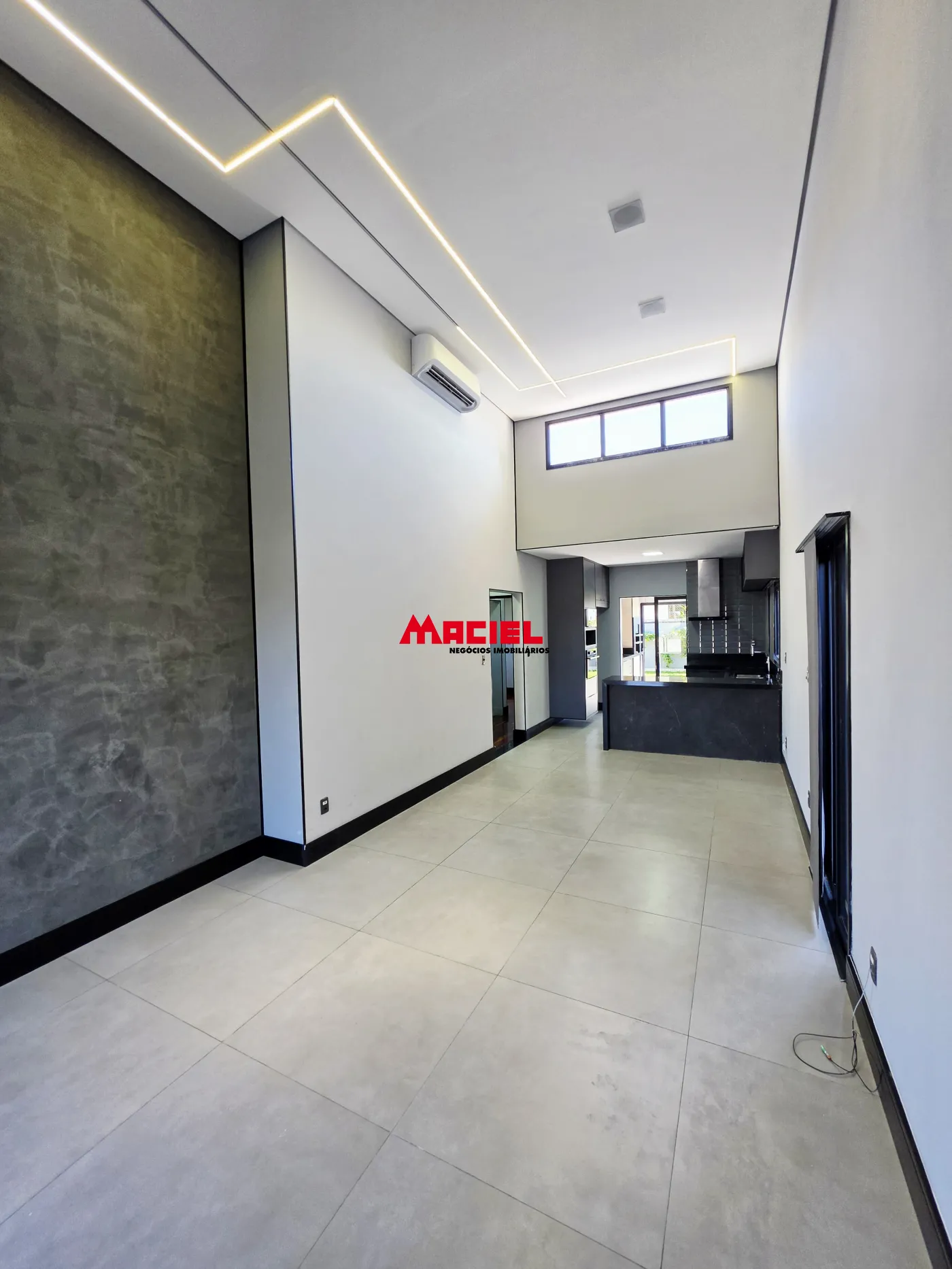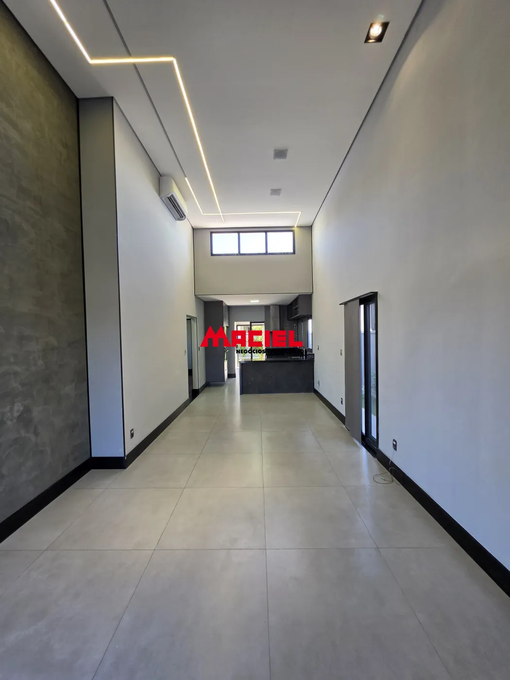 Projeto arquitetônico moderno com pé direito de 4,5 metros, criando uma sensação de amplitude diferenciada e favorecendo iluminação natural e ventilação