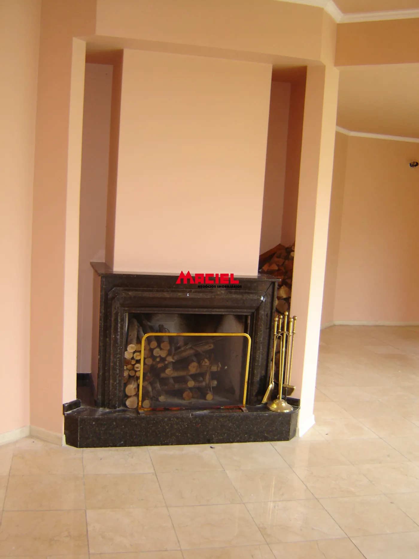 Sala ampla com lareira