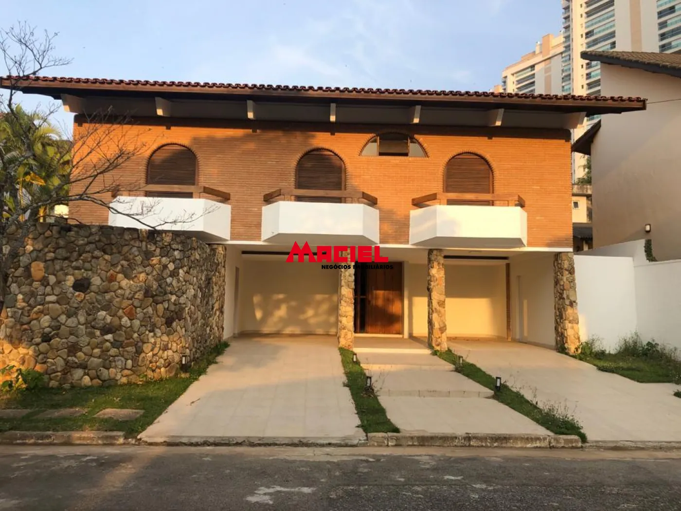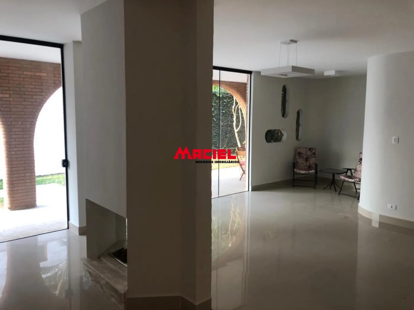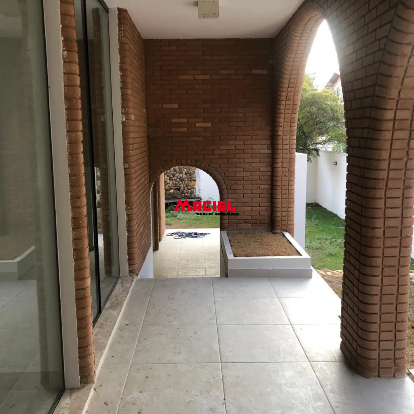 - Cristaleria de blindex para acesso à varanda com seus arcos de tijolos, estilo mediterrâneo