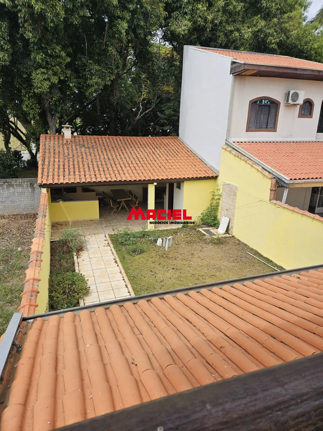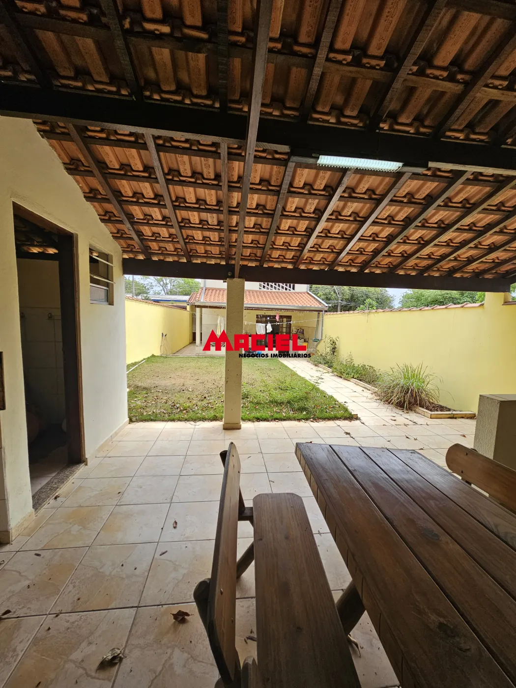 - Quintal com área verde e ducha.