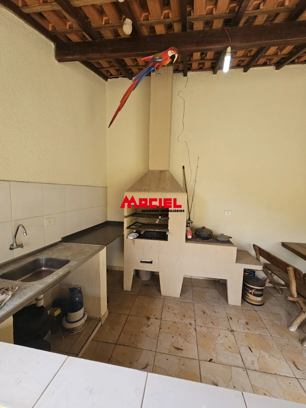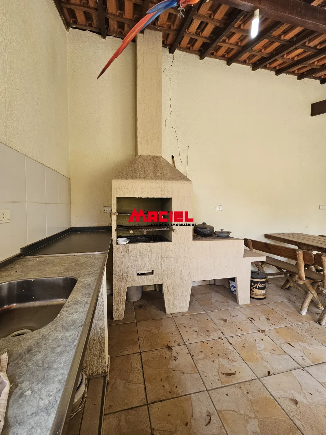 - Espaço gourmet com churrasqueira, fogão a lenha, 2 pias e 1 banheiro social.