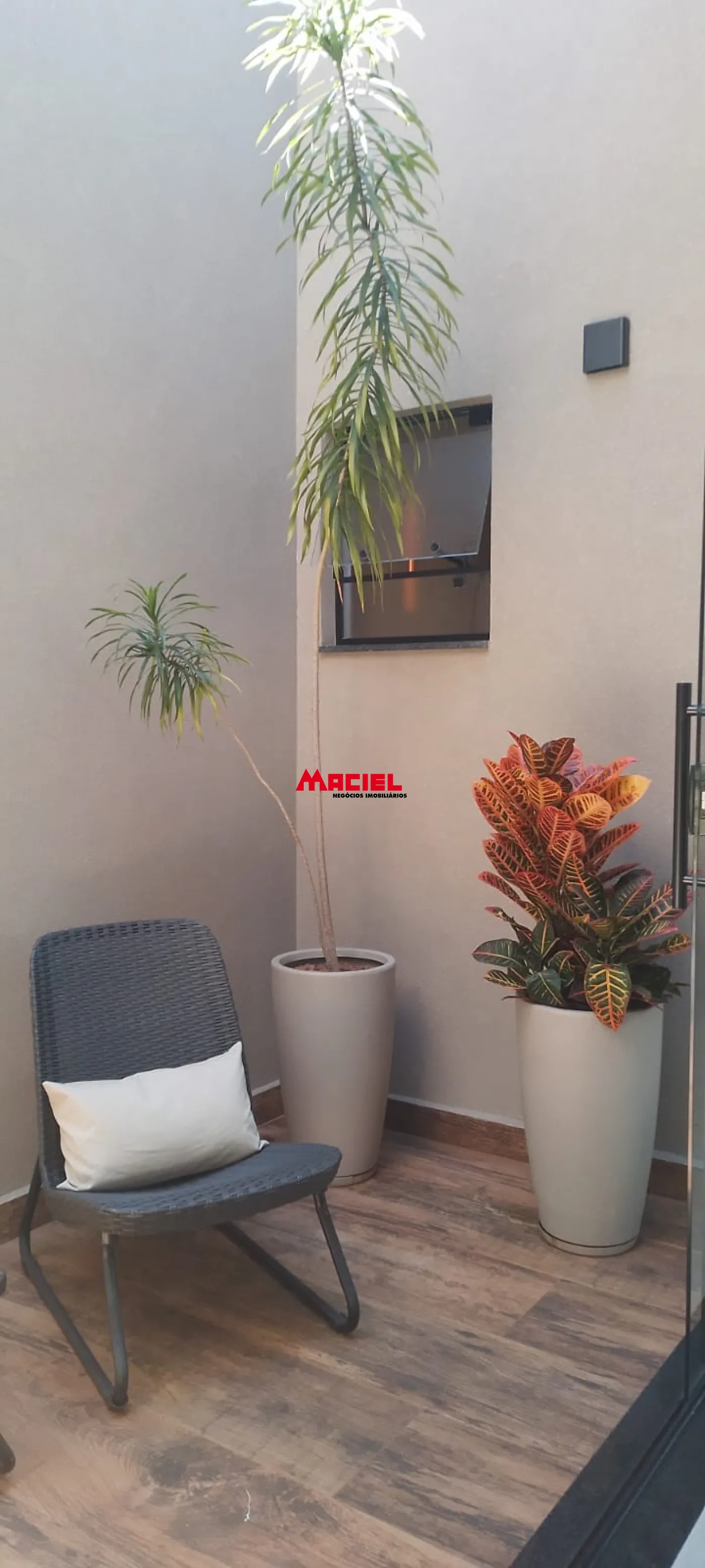 O charme adicional fica por conta do jardim de inverno central, que integra harmoniosamente a sala, a cozinha e a área gourmet, criando um ambiente acolhedor e sofisticado. Todos os cômodos possuem pontos de instalação para ar-condicionado, garantindo conforto em todas as estações.
