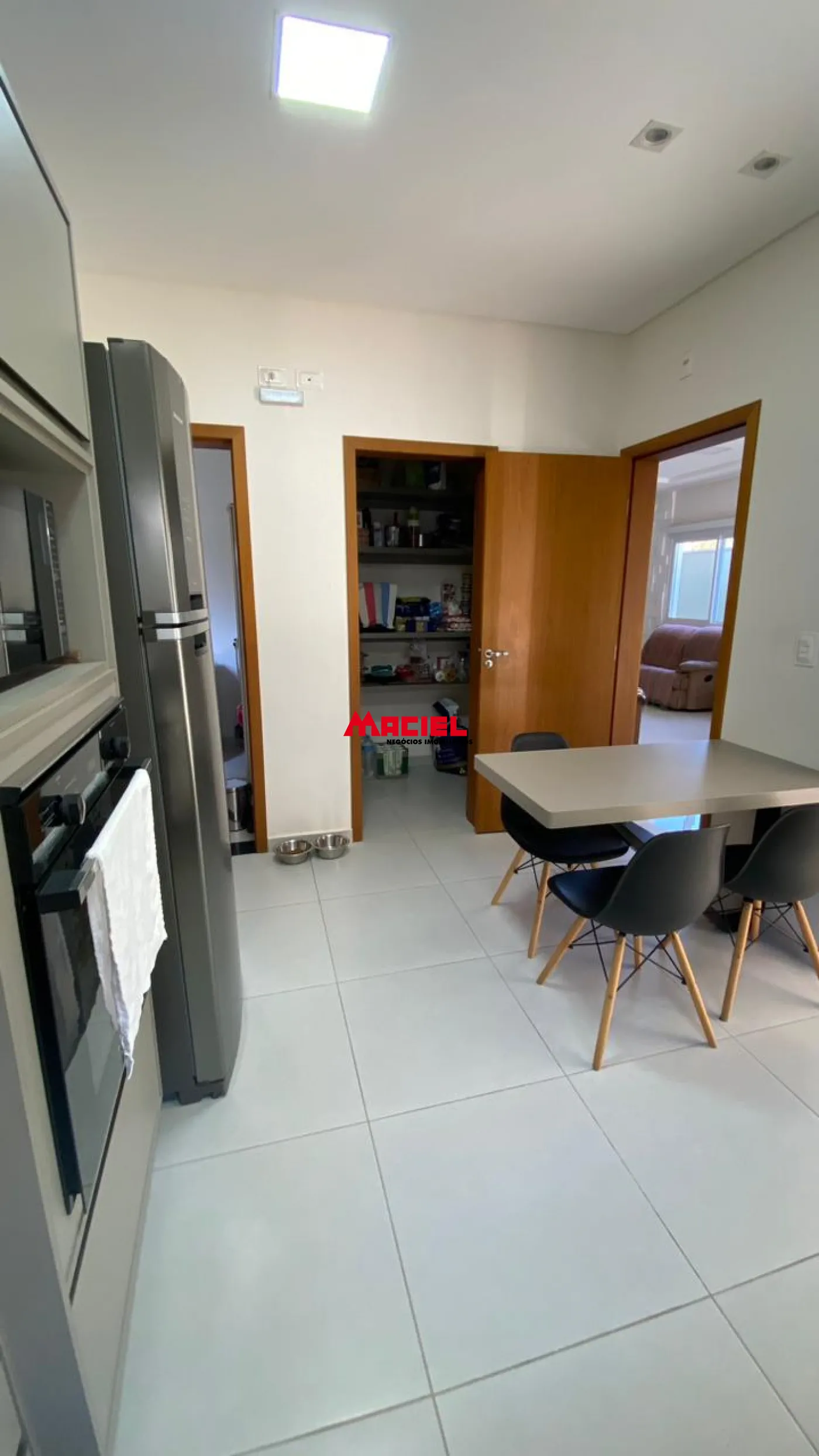 São 4 suítes, 6 banheiros completos, cozinha, despensa, planejados nos quartos, sala, cozinha e lavanderia.