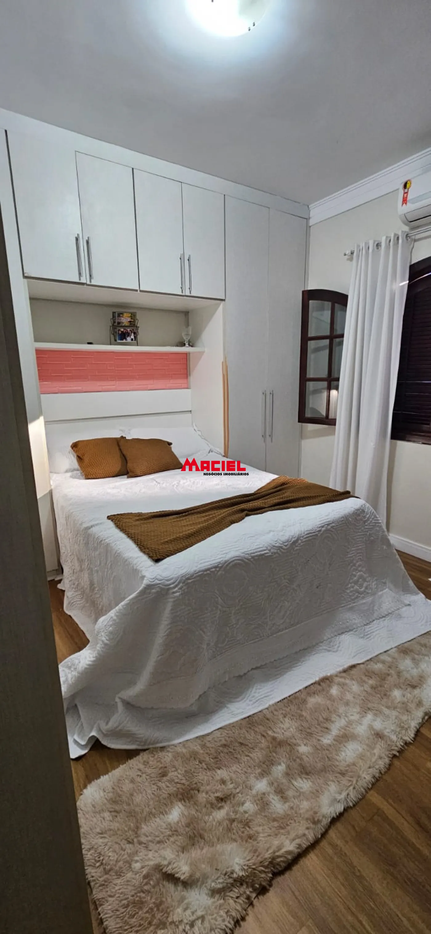 Piso frio de ótima qualidade, teto com sanca de gesso, ar condicionado, armário embutido nos dormitórios e na cozinha.