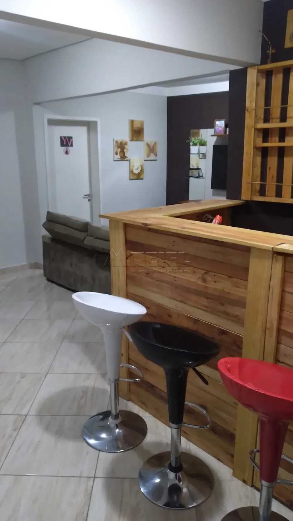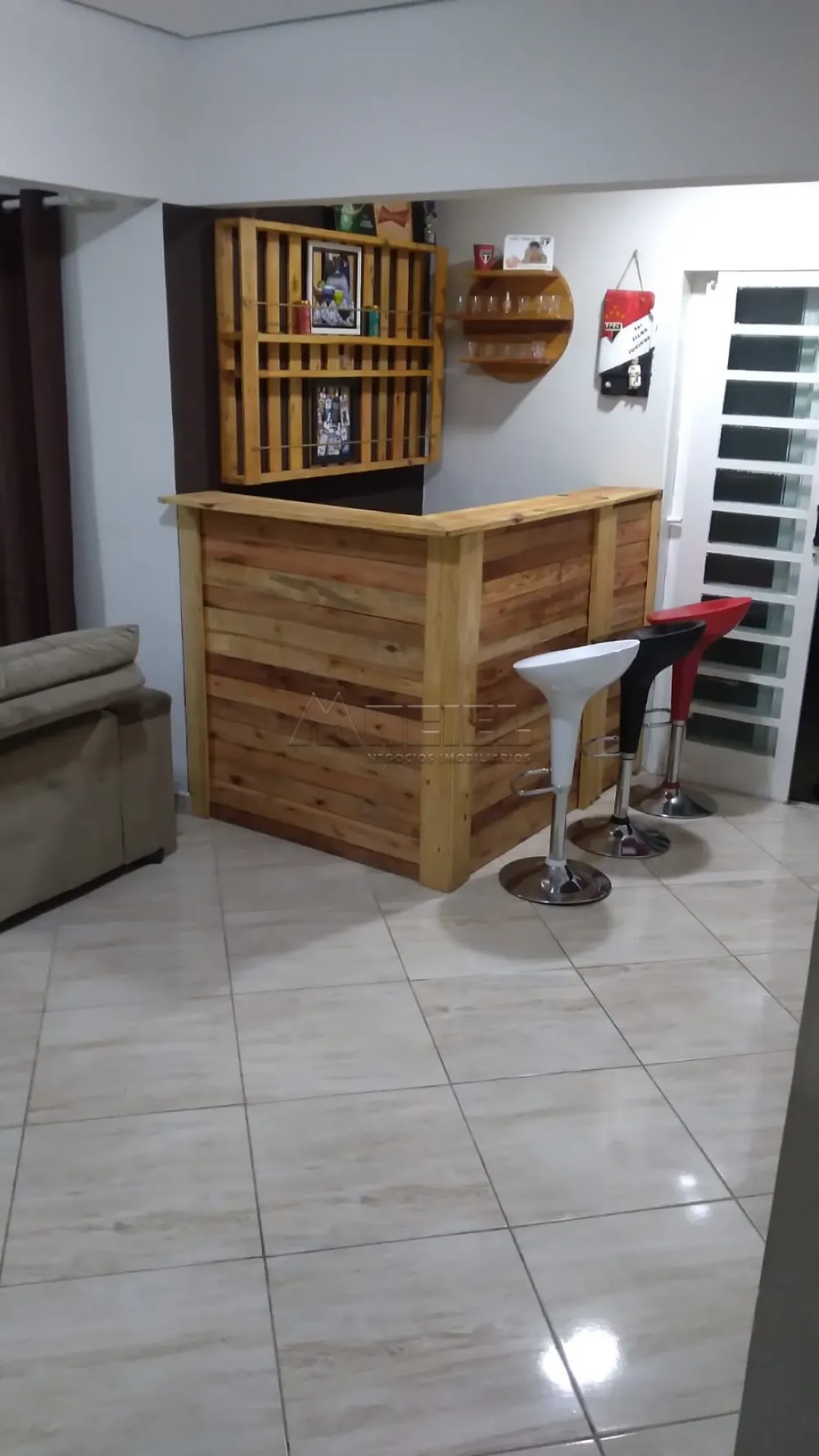 Obs . Casa com móveis planejados e um bar na sala .