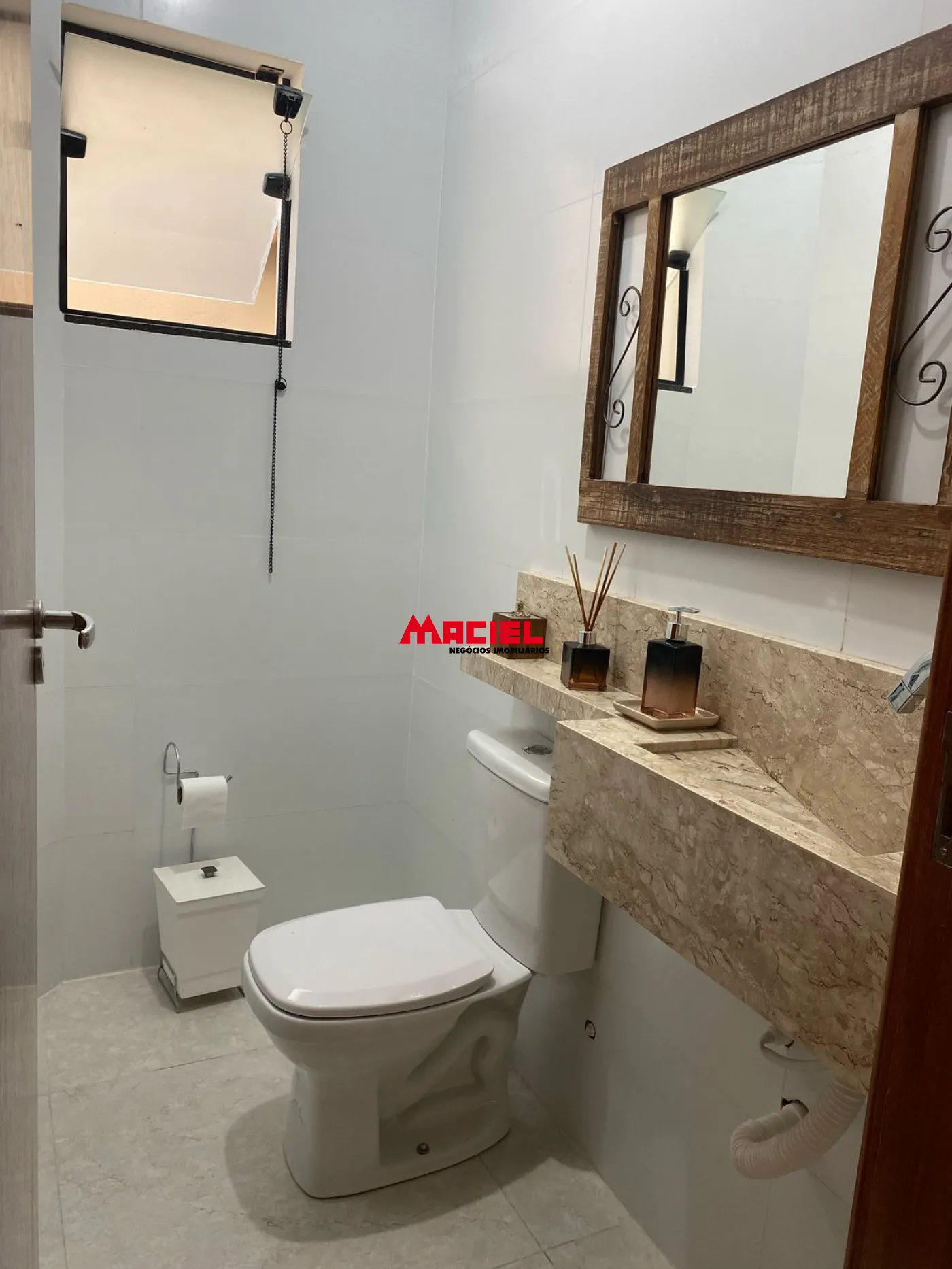 Lavabo com acabamento em mármore Travertino.
