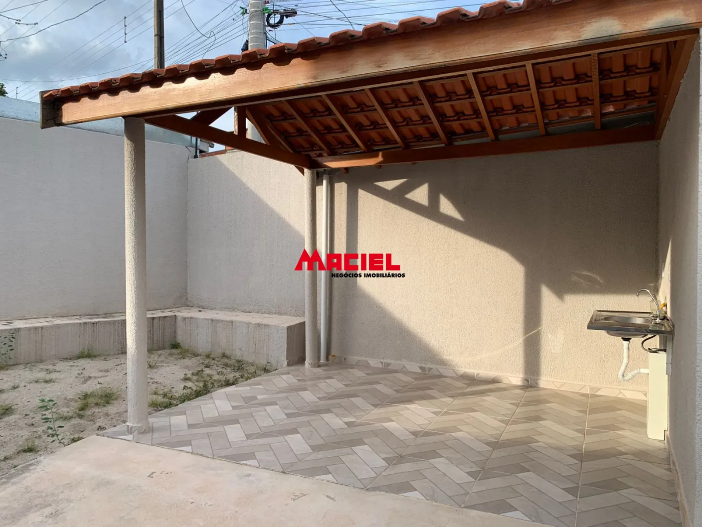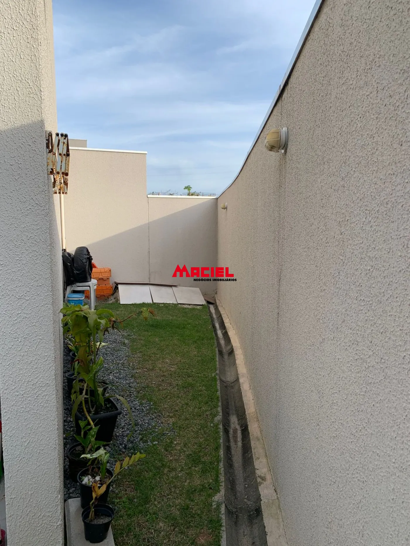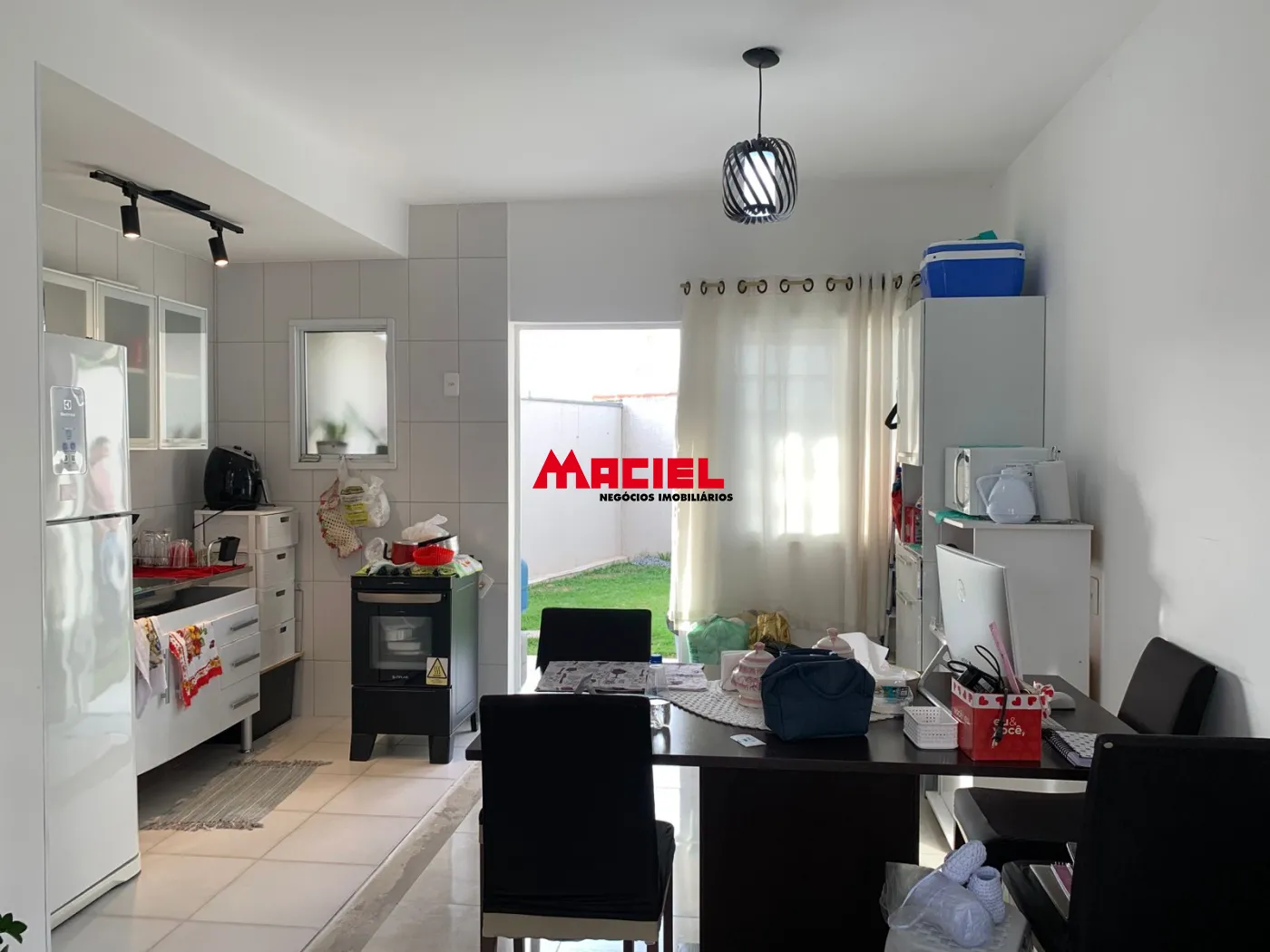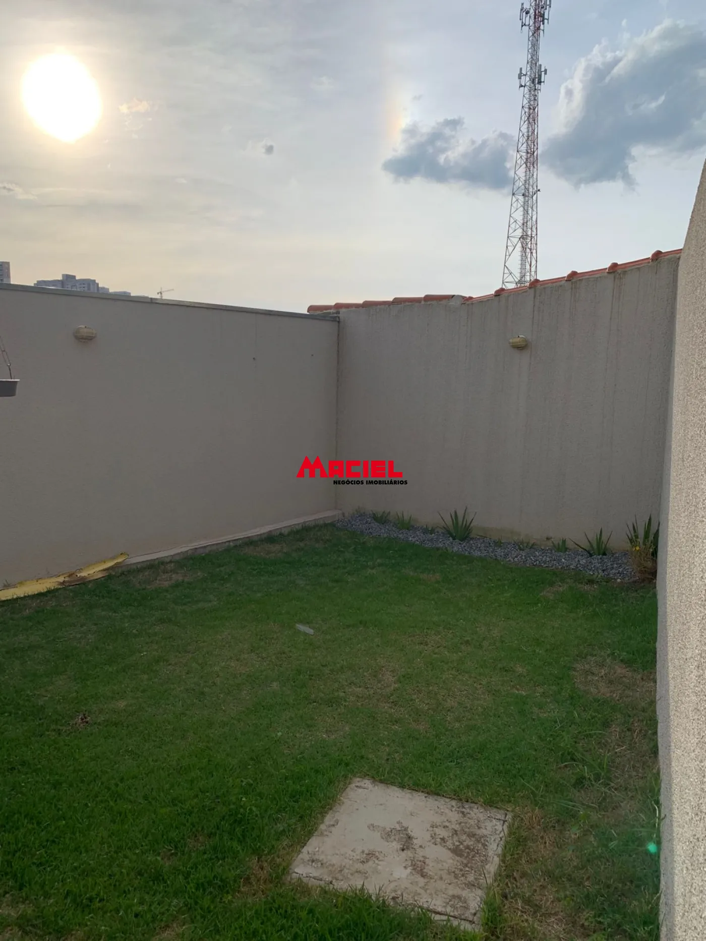 Nos fundos, há uma área de serviço coberta e um agradável quintal com grama, perfeito para momentos de lazer ou para quem possui pets.