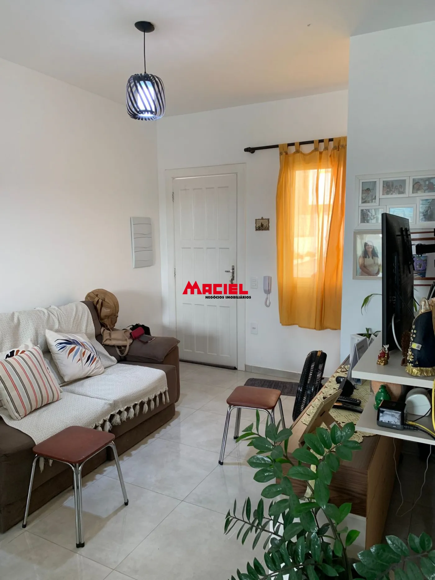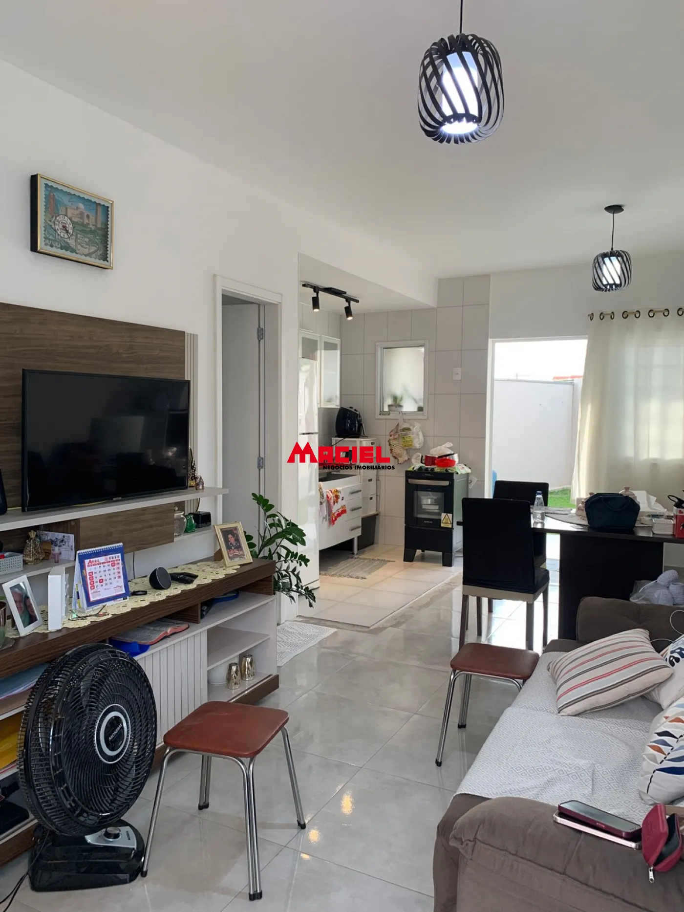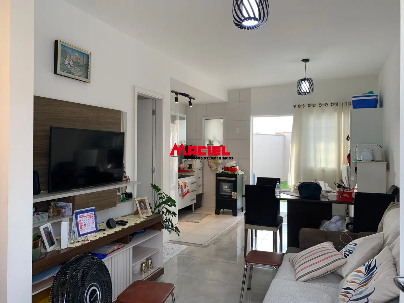 O sobrado conta com um projeto bem distribuído. No pavimento superior, são 2 dormitórios, sendo um deles com sacada, além de banheiro social. No pavimento inferior, o imóvel oferece uma ampla sala de TV integrada à sala de jantar e cozinha, criando um ambiente moderno e funcional, além de um lavabo.