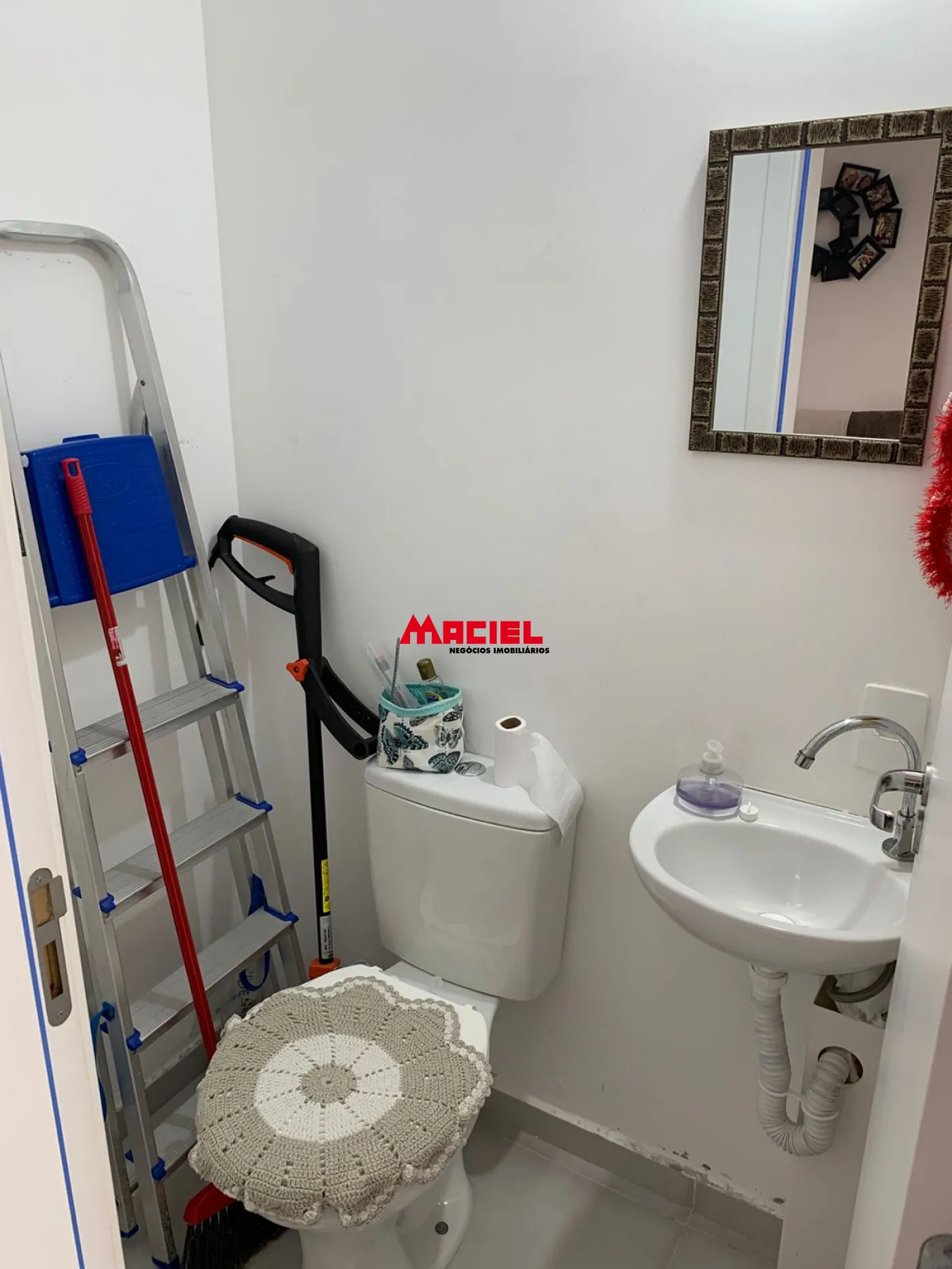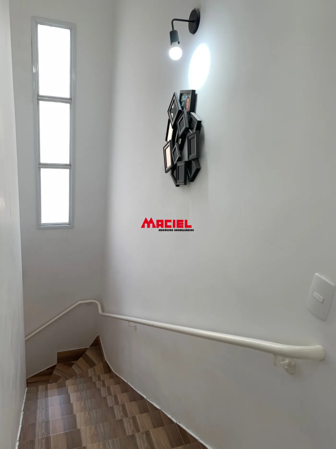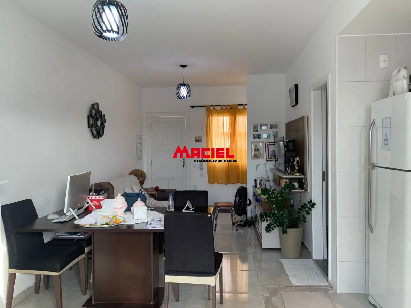 O sobrado conta com um projeto bem distribuído. No pavimento superior, são 2 dormitórios, sendo um deles com sacada, além de banheiro social. No pavimento inferior, o imóvel oferece uma ampla sala de TV integrada à sala de jantar e cozinha, criando um ambiente moderno e funcional, além de um lavabo.