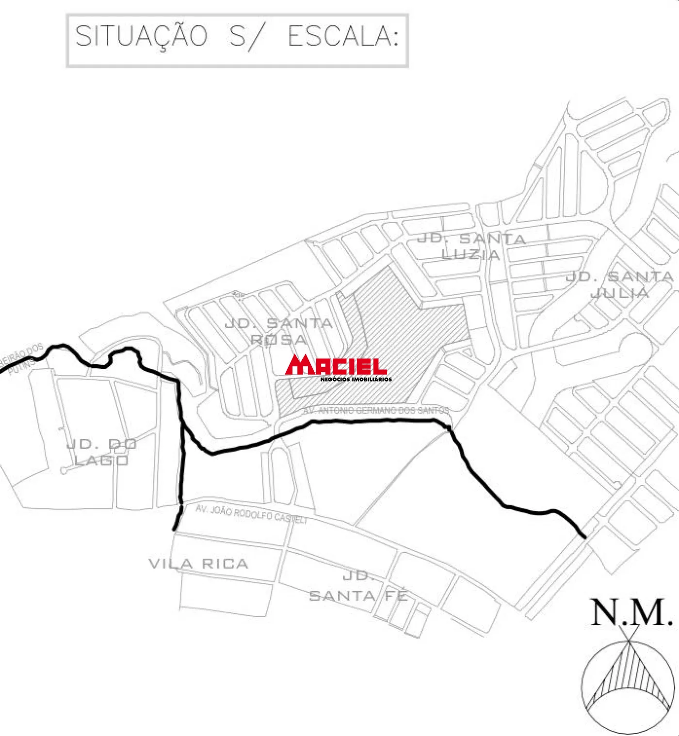Trata-se de uma gleba com área total de 119.721,66 m², situada no bairro Santa Júlia, classificada como Zoneamento ZM4. Dentro desta área, temos as seguintes divisões: